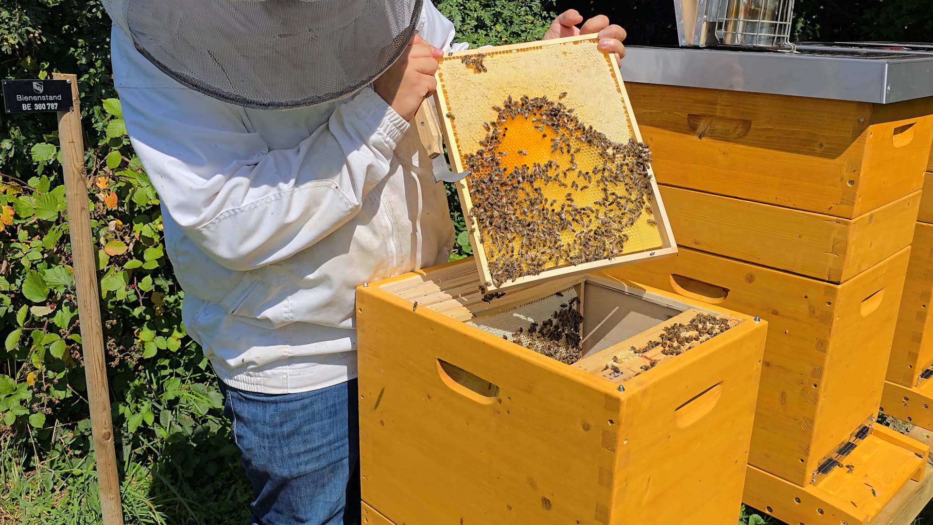 • Ausreichend Honig im Bienenstock belassen, um den Nahrungsbedarf der Kolonie zu decken und Stress während der Kontrollen zu verringern.